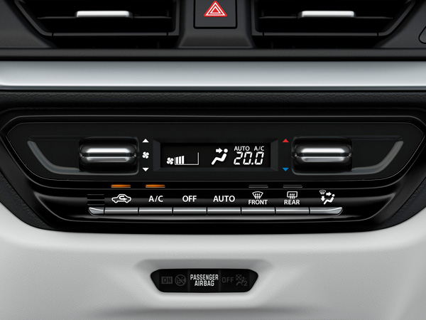 Swift ir aprīkots ar gaisa kondicionētāju ar digitālo vadības paneli un manuāli atlasāmiem gaisa kondicionēšanas režīmiem.