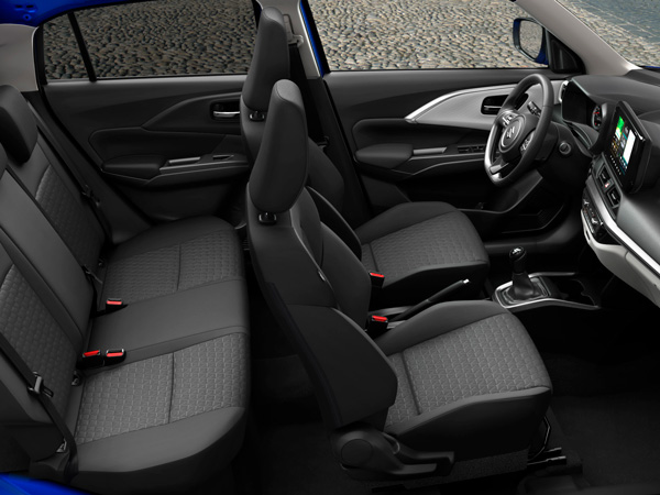 Polsterējums priekšējo sēdekļu plecu zonā un sānos uzlabo vadītāja un pasažiera komfortu un piešķir sēdekļiem dinamiski veidotu izskatu, ko papildina apšuvuma ģeometriskais raksts.